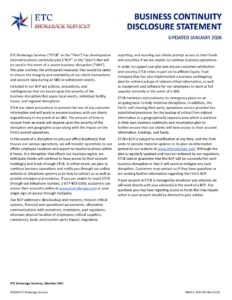 Business Continuity Disclosure